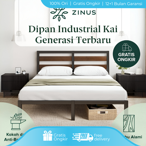 Dipan Tempat Tidur Zinus Kai Ranjang Besi Industrial DIY Bed In a Box