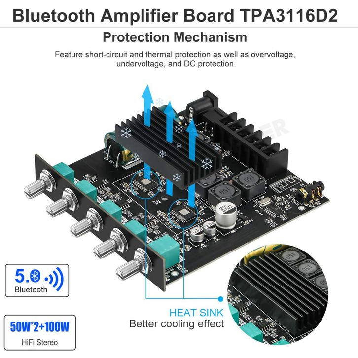 [Mall] ZK-502MT 2.0 Stereo Bluetooth Audio Digital HIFI Power Amplifier Papan Modul Penyesuaian Bass Tinggi