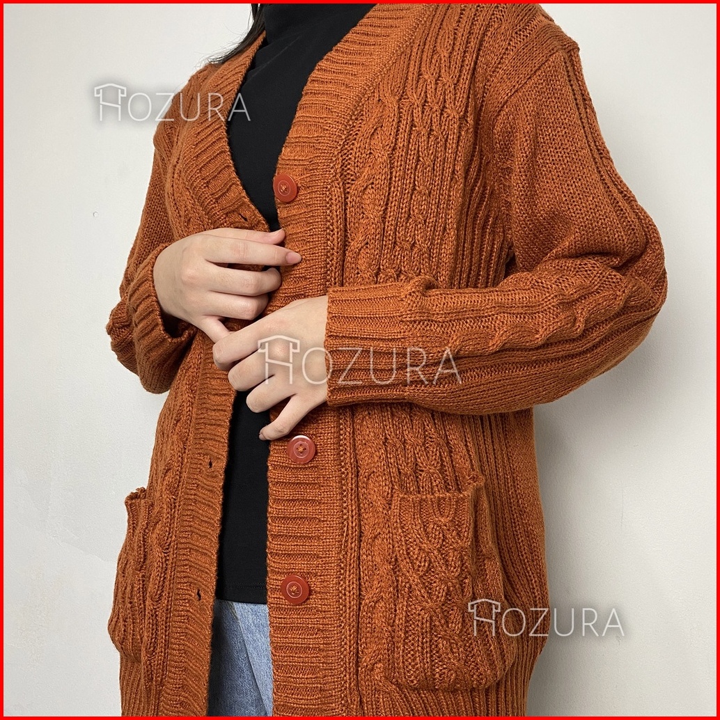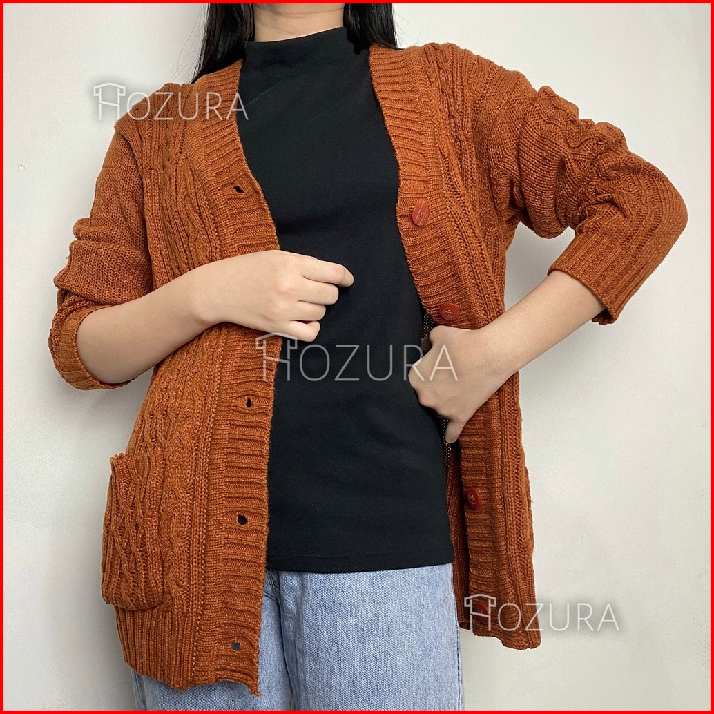 Hozura - Cardigan Sweater Rajut Wanita Lanna Batta - Cardigan Rajut Jumbo Oversize Tebal - Outer Wanita - Sweater Korean