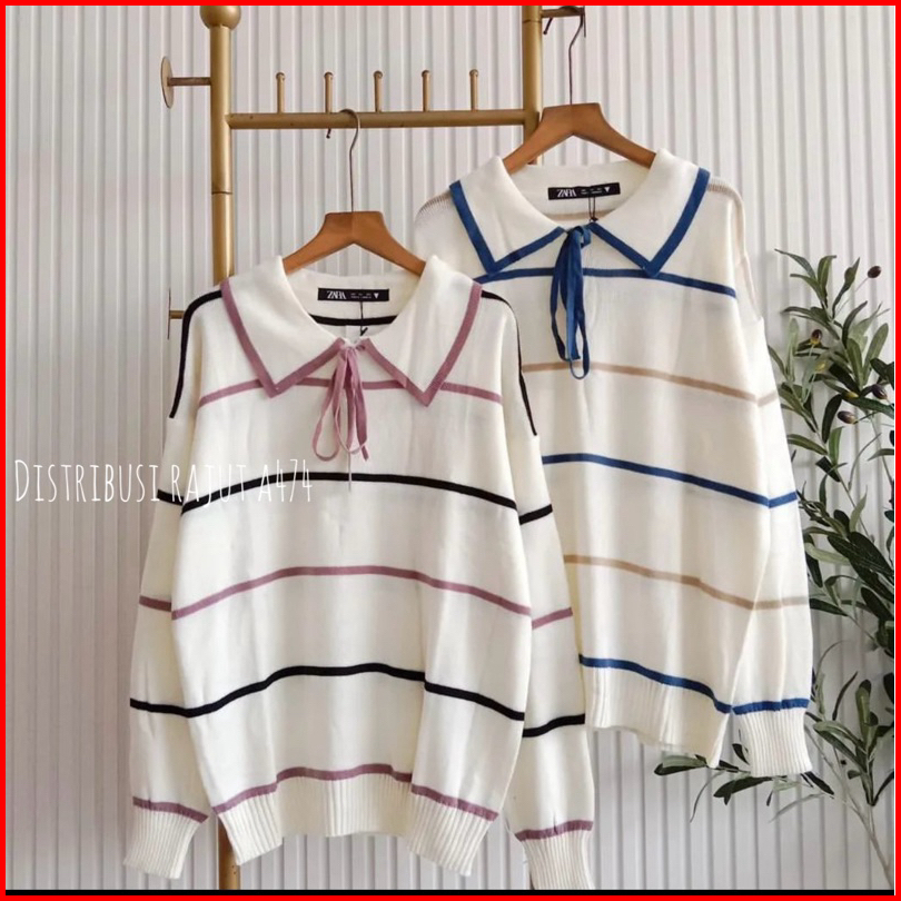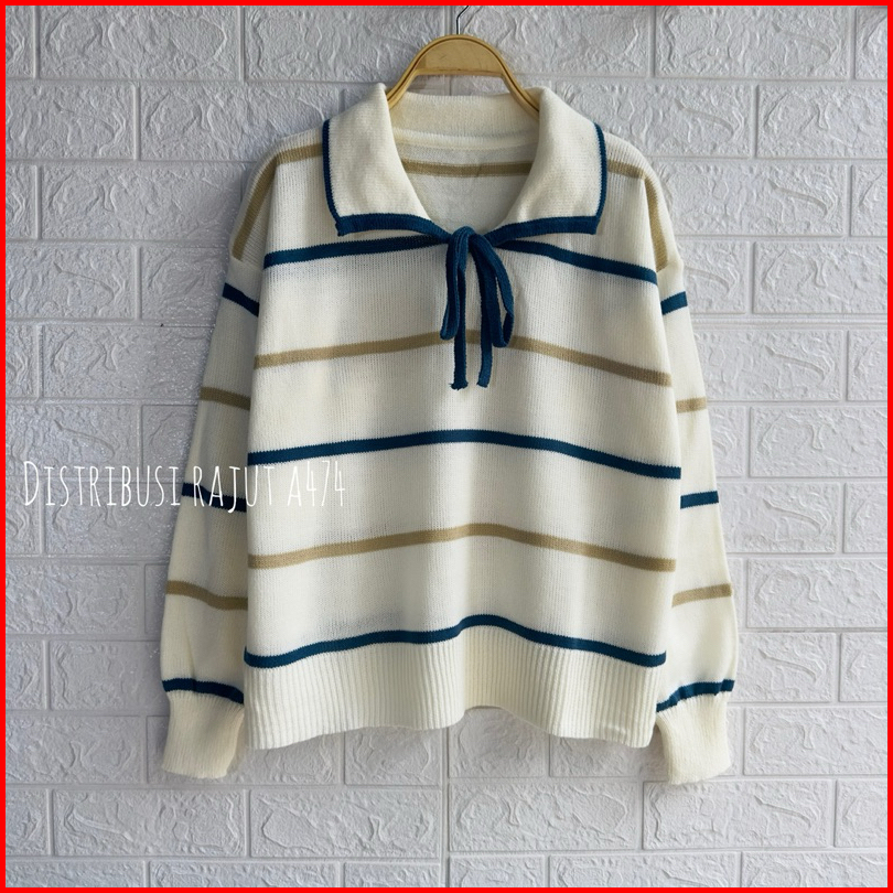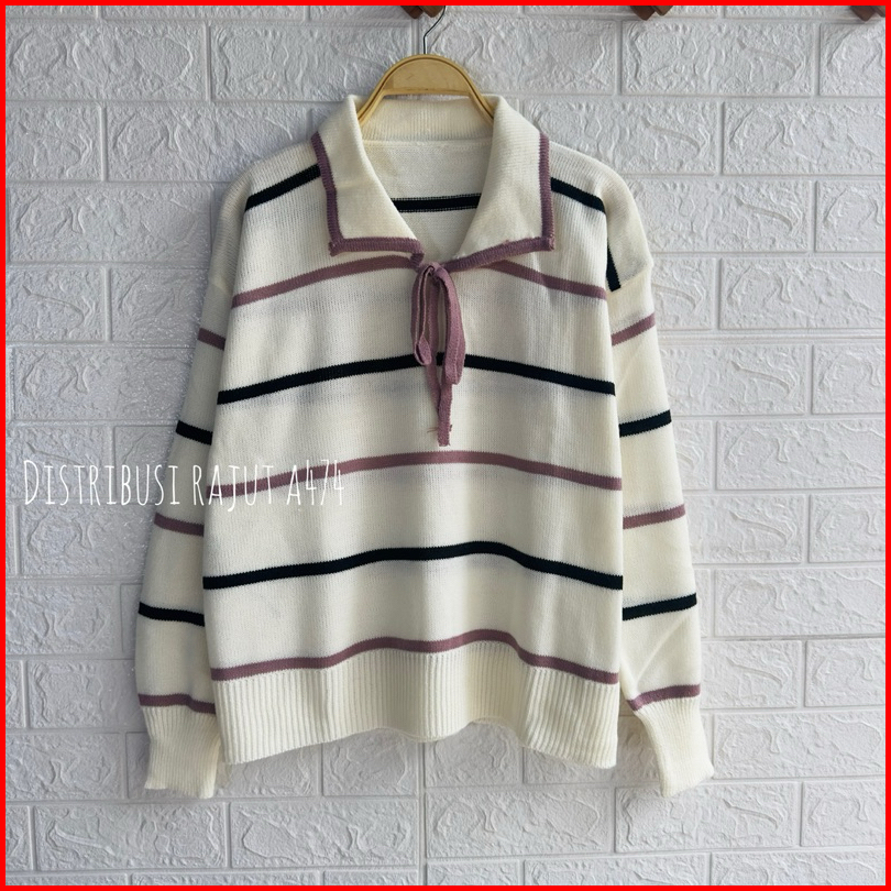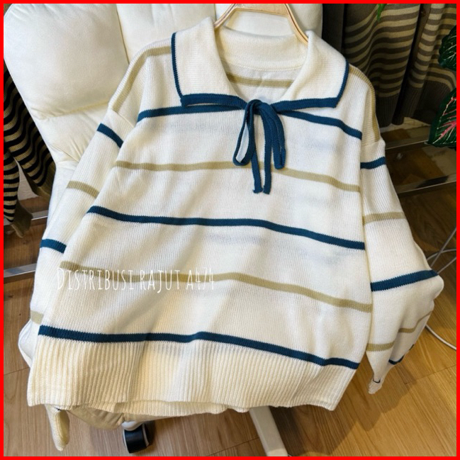 Harumi Polo Pita Kancing Tali Sweter Rajut Wanita Lengan Panjang