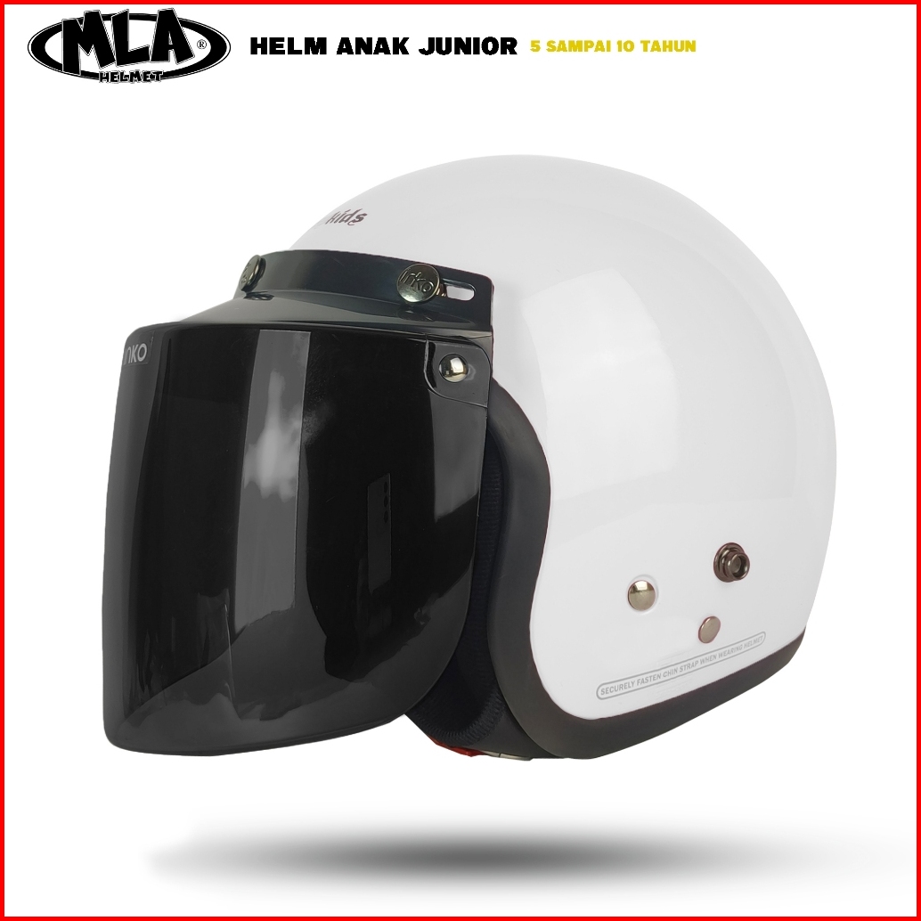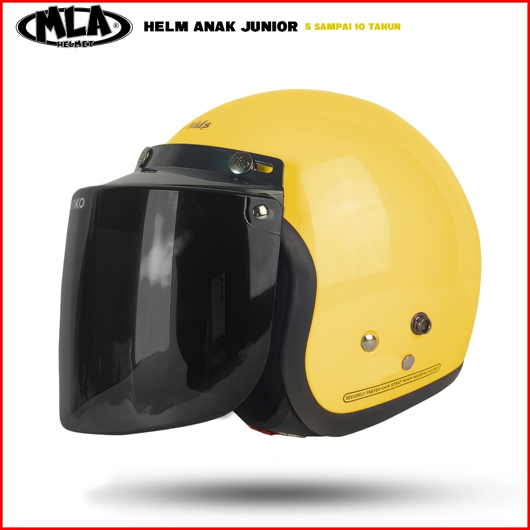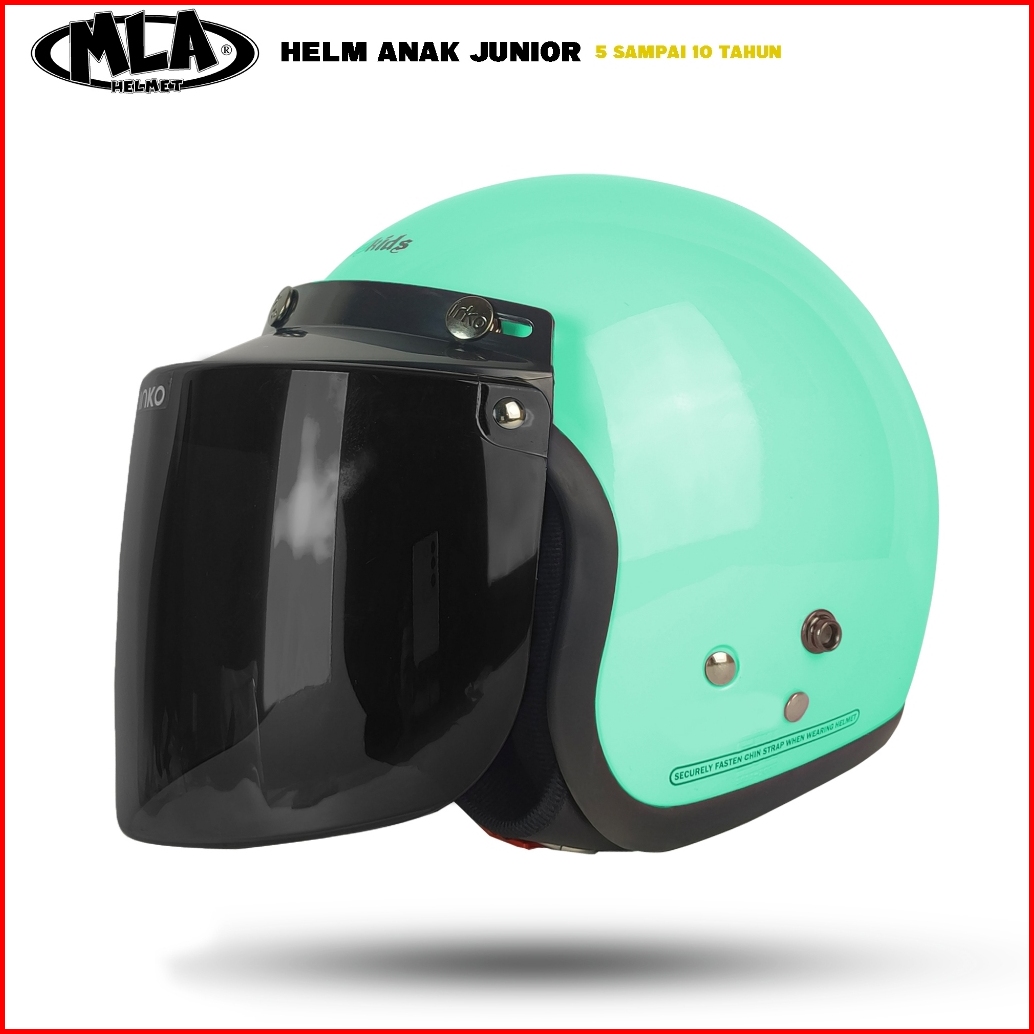 Helm Bogo Retro Anak Full Leher Warna Hijau Mint Free Kaca Sni Helm Bogo Anak Junior Usia 5-10 Tahun Helm Anak Junior Or