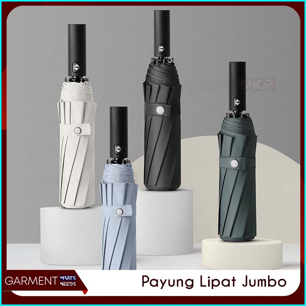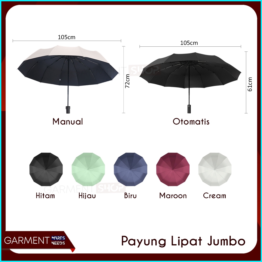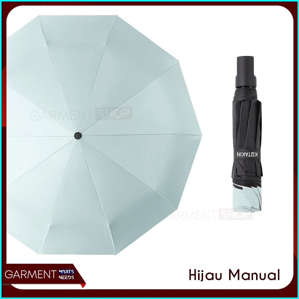 Payung Lipat Jumbo 10 Jari Travel Folding Umbrella Portable Otomatis Manual Kuat Kokoh Warna Warni