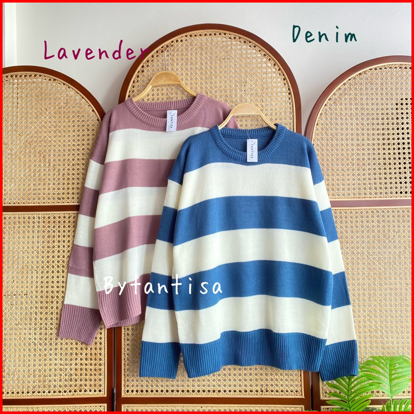 Eira Sweater Rajut Strip Oversize Atasan Wanita Kniited