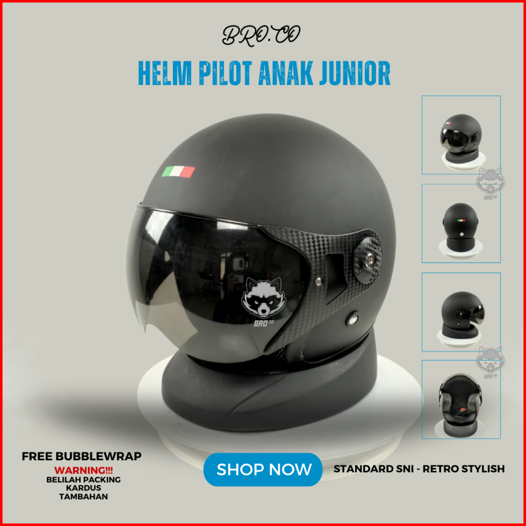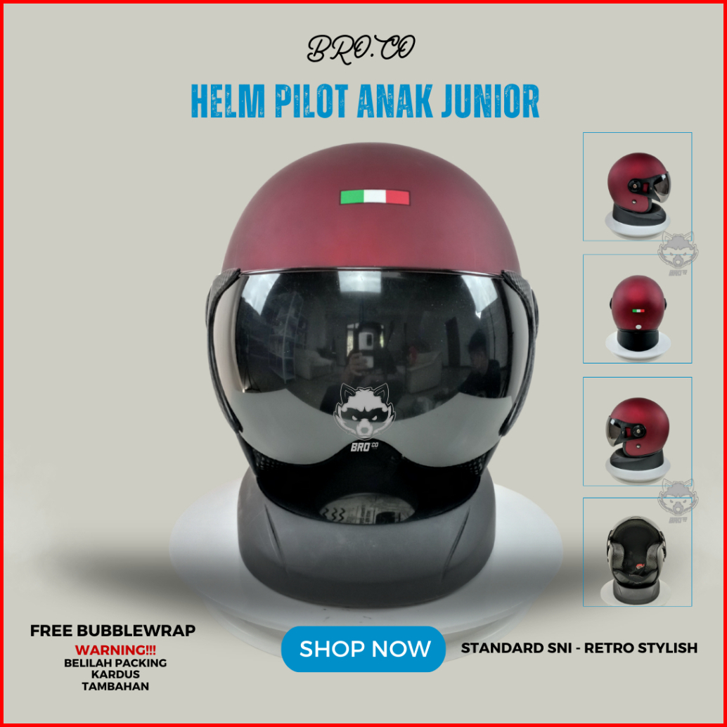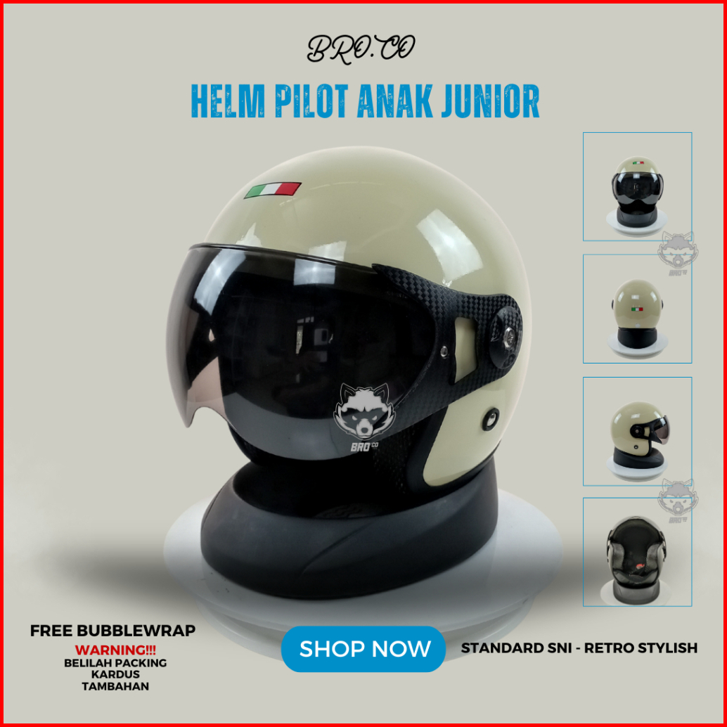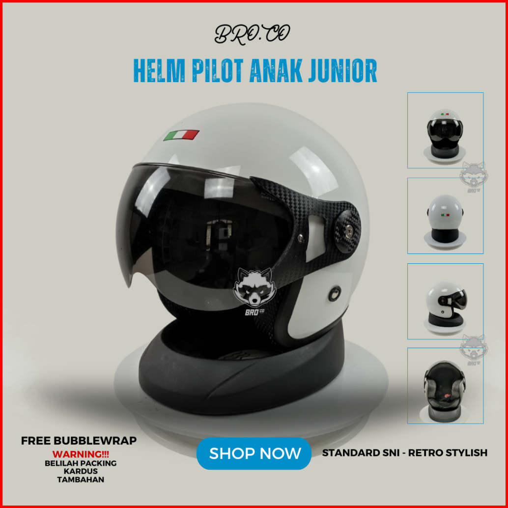 Helm Pilot Retro Italy Anak Anak Junior Half Face Standard Sni Premium Brokids Bro.co Untuk Laki-laki Dan Perempuan Cowo