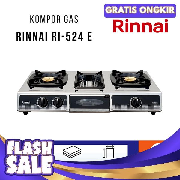 GRATIS ONGKIR/RINNAI : KOMPOR 2 TUNGKU + GRILL PAN / PANGGANGAN SATE RI 524E ( 524 E )