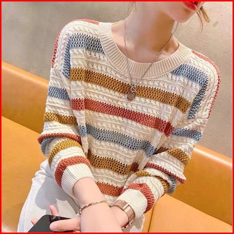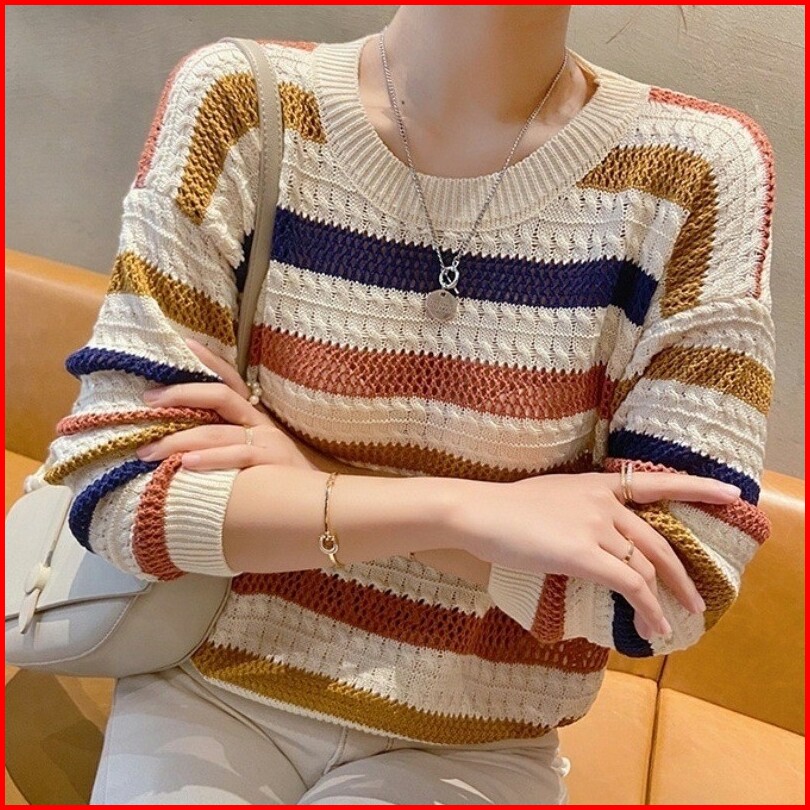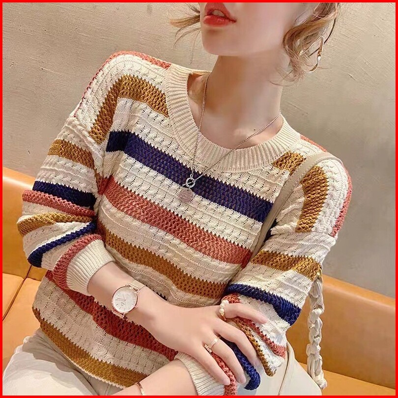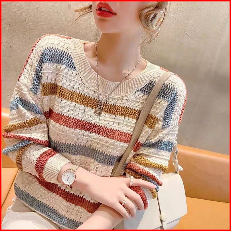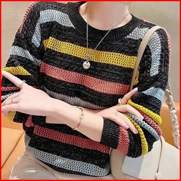 Sac - Kn203 Top Knit Import Sweater - Atasan Wanita Rajut Jaring Import Stripes