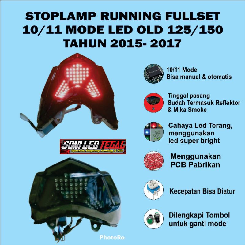 STOPLAMP RUNNING VARIO LED OLD TAHUN 2015 2016 2017 11 MODE PNP FULLSET BATOK MIKA REFLEKTOR