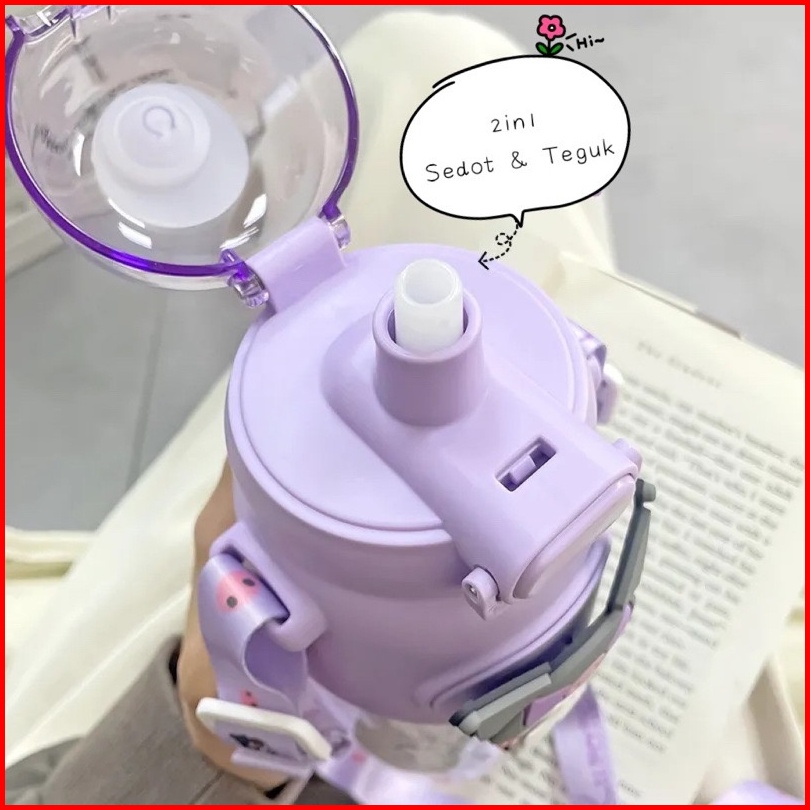 Best Seller Botol Minum Anak 2in1 Sedotan Teguk Tritan Karakter Melody Cinnamoroll Kuromi 600ml