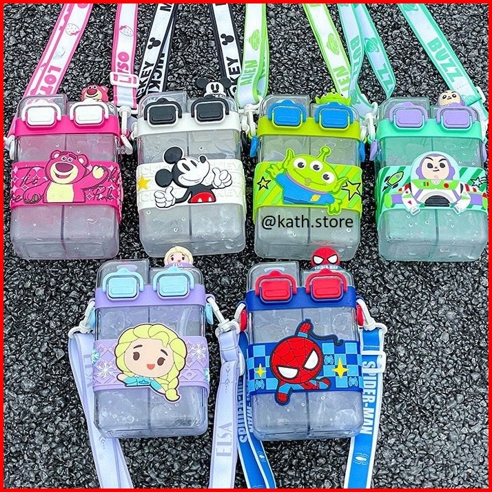 Best Seller Botol Minum Dual Wadah 2 Sisi Tempat Tritan Bpa Free Mickey Snoopy Lotso 800ml