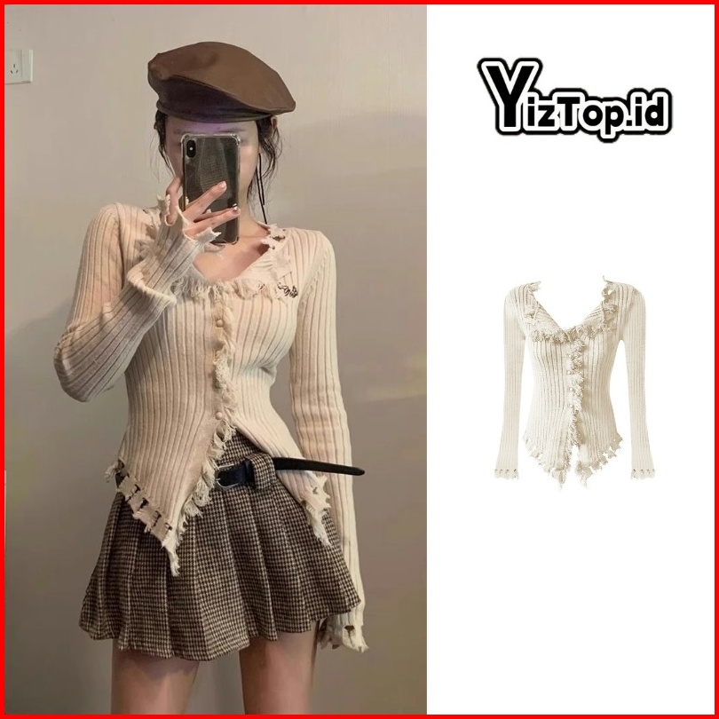 Yiztop - Wanita Sweater Rajut Korea Panjang Wanita Sweater Rajut Premium