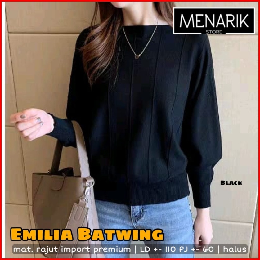 Emilia Batwing Sweater Rajut Halus Ld 110 Pj 60 Nyaman Dipakai