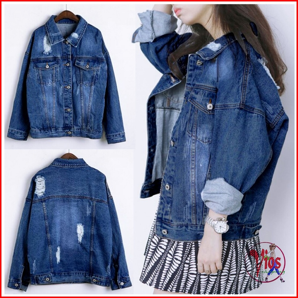 Vios - Jaket Jeans Oversize Wanita Sobek Kekinian Denim Jacket Fashion Korean Style Karina