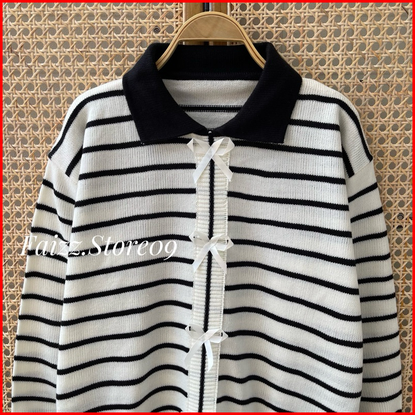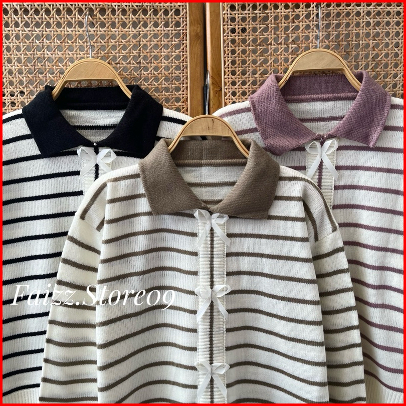 Abel Sweater Atasan Rajut Motif Pita Stripe Lengan Panjang Premium Wanita Kekinian