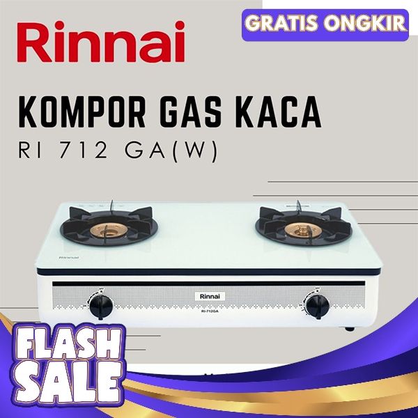 GRATIS ONGKIR/Rinnai RI 712 GAW - Kompor Gas Kaca 2 Tungku Putih Api lilin 1