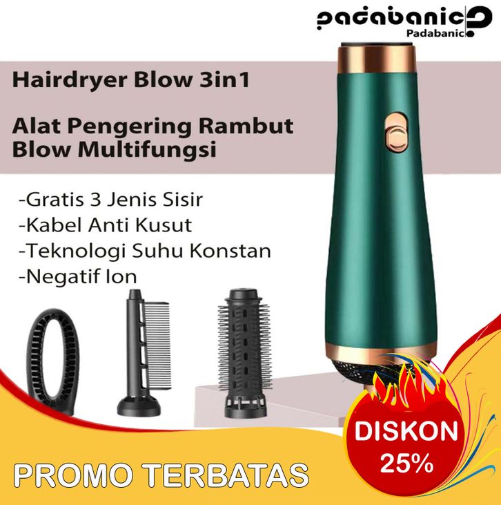 PADABANIC Hair Dryer Sisir Blow 3in1 | Alat Pengering Rambut A8003 | Negatif Ion | Suhu Konstan