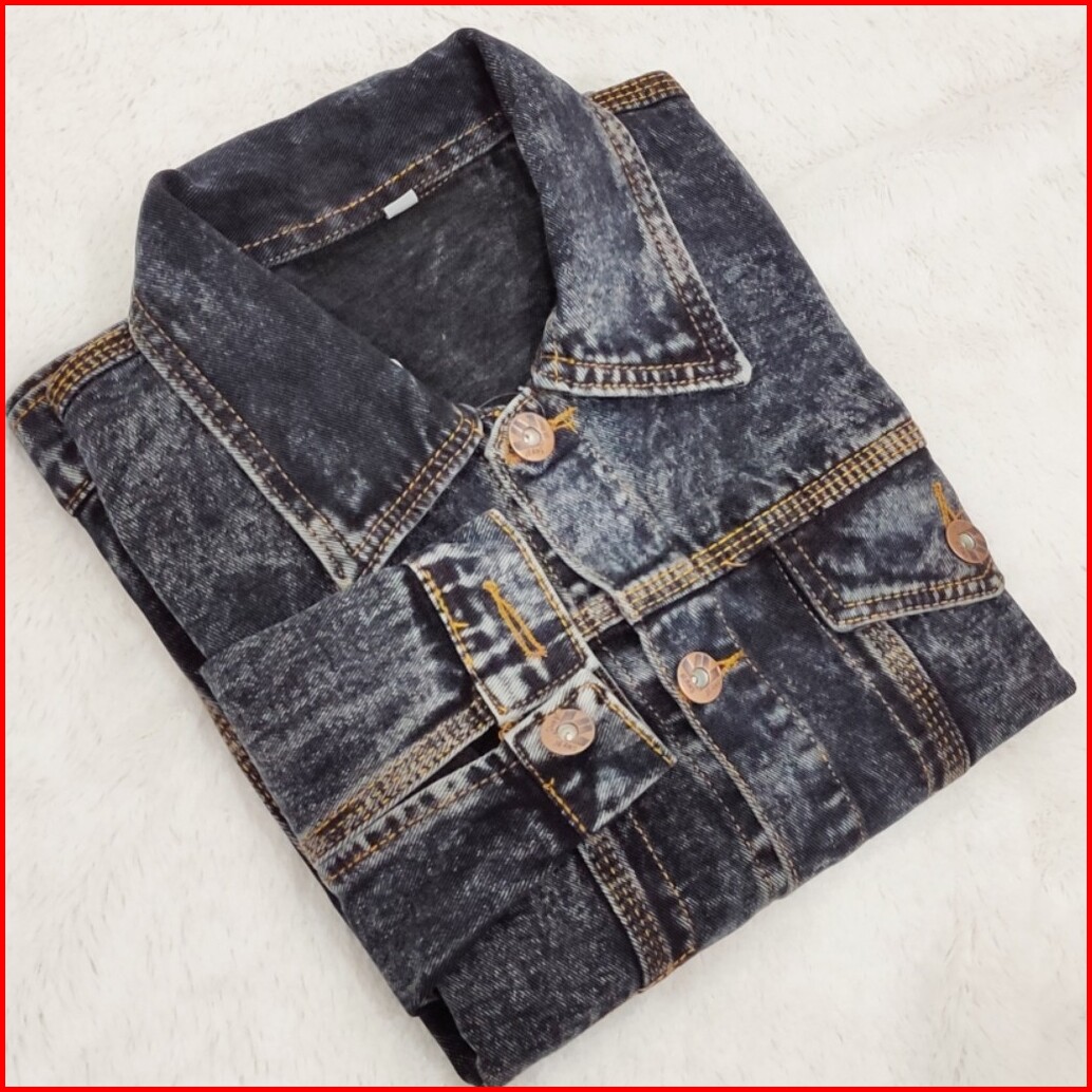 Jaket Jeans Wanita Hitam Snow Kancing Terbaru Kekinian Murah