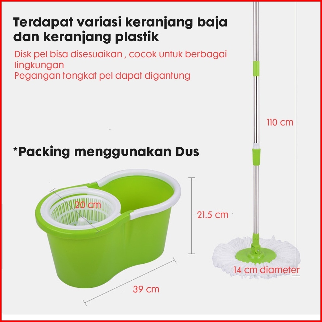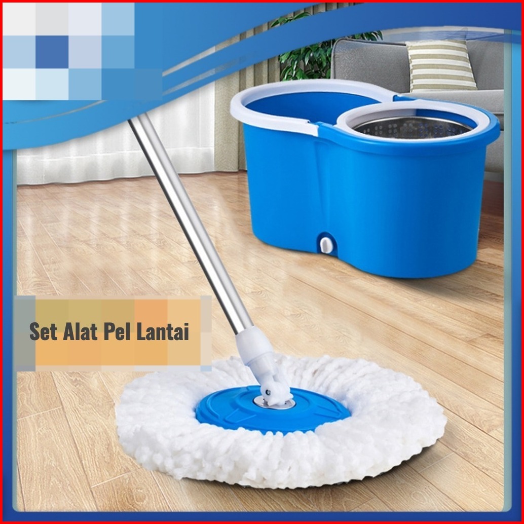 Set Alat Pel Lantai Stainless Super Mop Dengan Ember Pencuci Putar Hand Pressure Rotary Mop 360