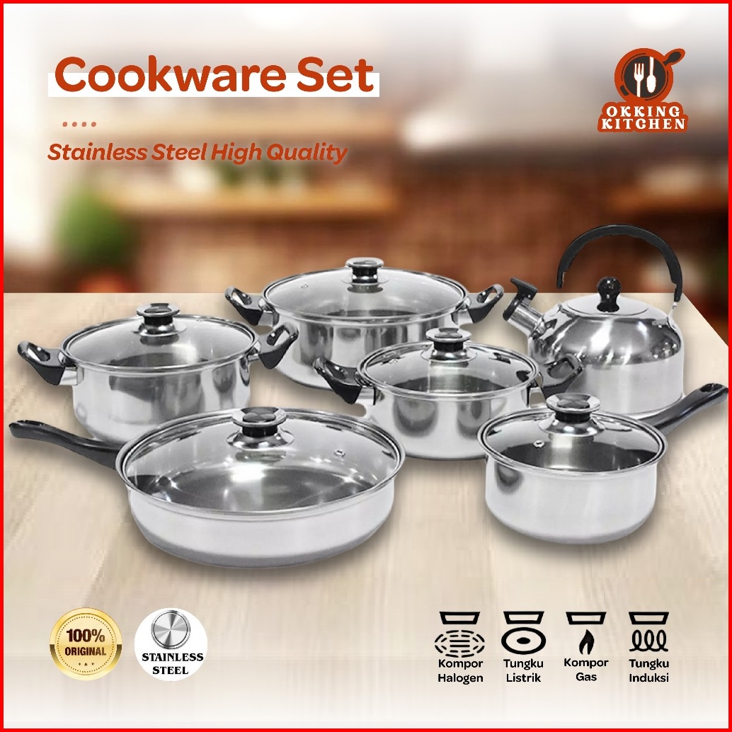 Panci Set Masak Stainless Steel Isi 6 Set Anti Karat Bahan Tebal Panci Teko 6 Pcs Stainless 270