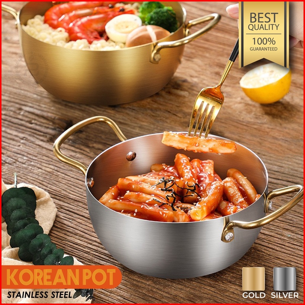 Aesthetic Panci Mie Korea 16cm 18cm 20cm Stainless Silver Ramen Ramyun Cookware Korean Pot Bowl Noodle Soup Seafood