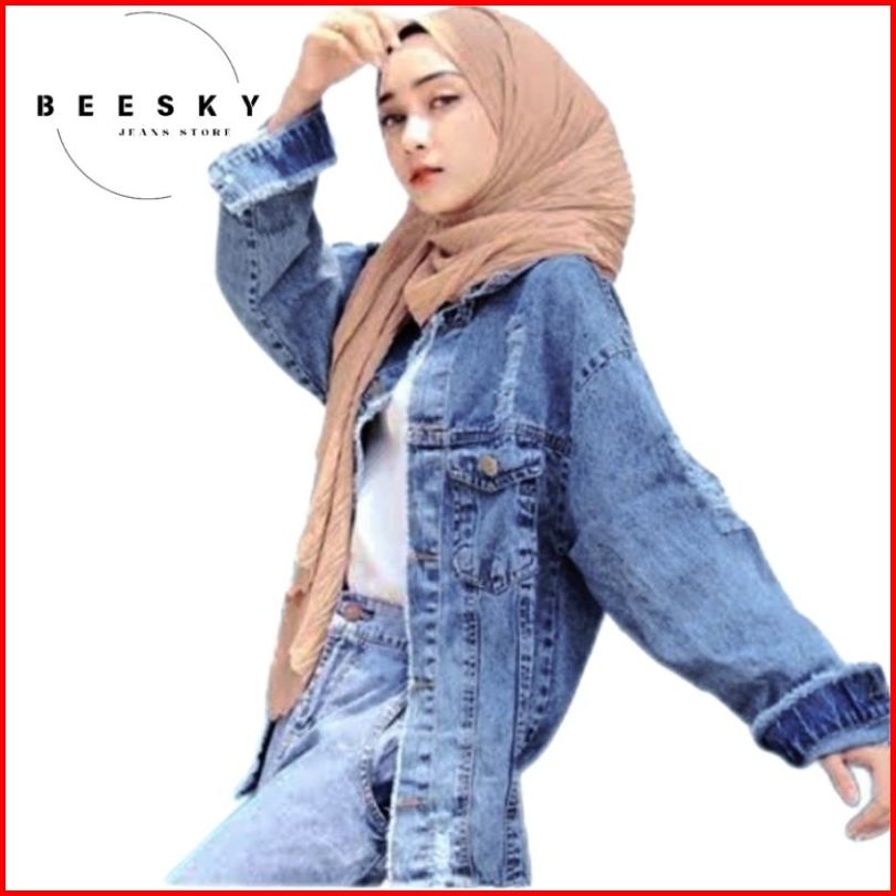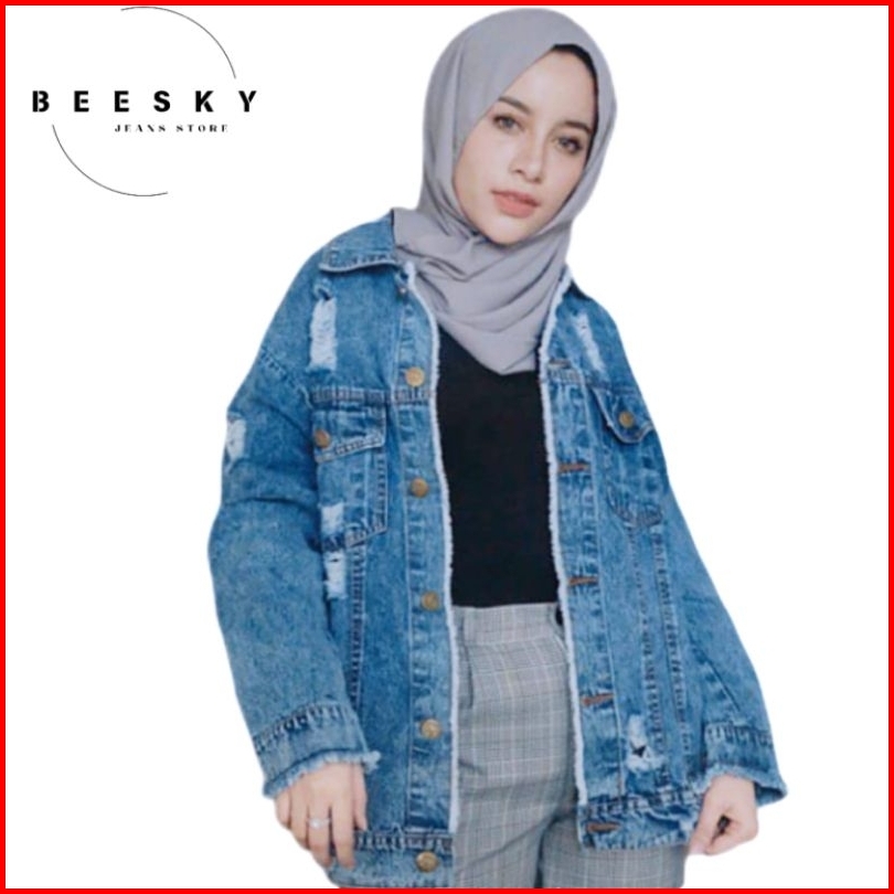 Jaket Jeans Cewek Wanita Oversize 8186 Acid Ripped