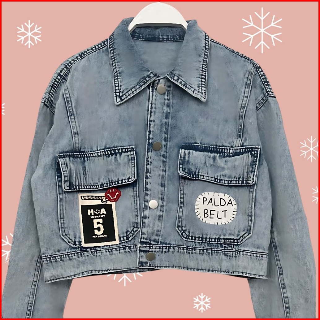 Px1 Jaket Jeans Crop Wanita Korean Style Bahan Premium Soft Jeans Lembut Dan Nyaman