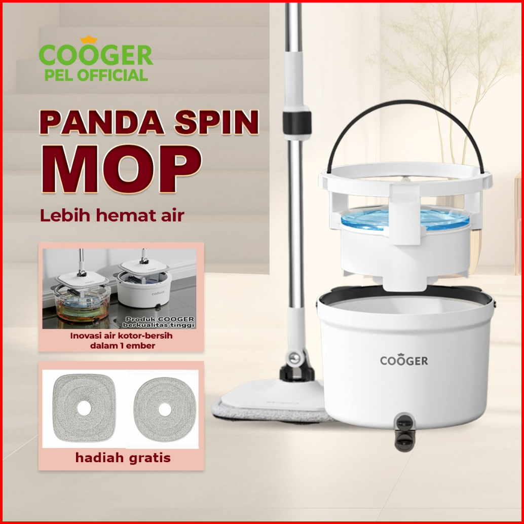 Cooger Alat Pel Lantai Putar Panda Spin Mop Otomatis Memisahkan Air Kotor Dan Bersih Dengan Ember Mudah Digunakan Pel Al