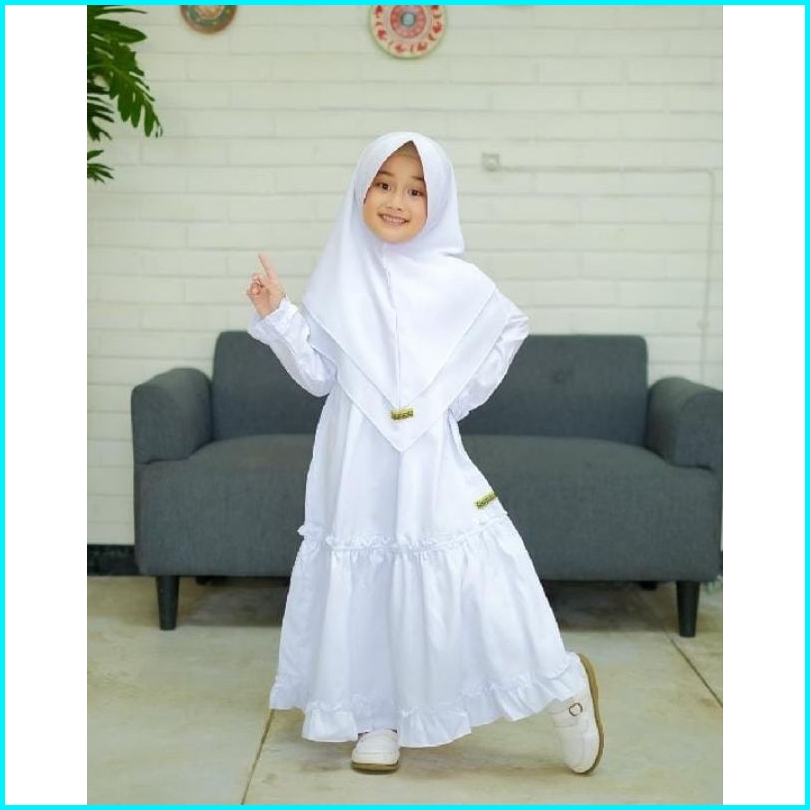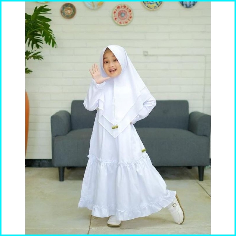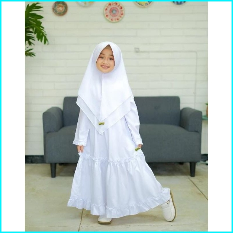 Gamis Anak Set Hijab Baju Manasik Anak Putih Terbaru
