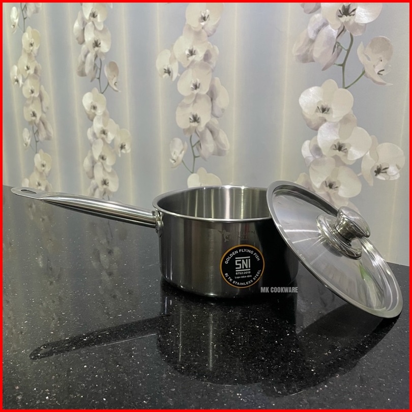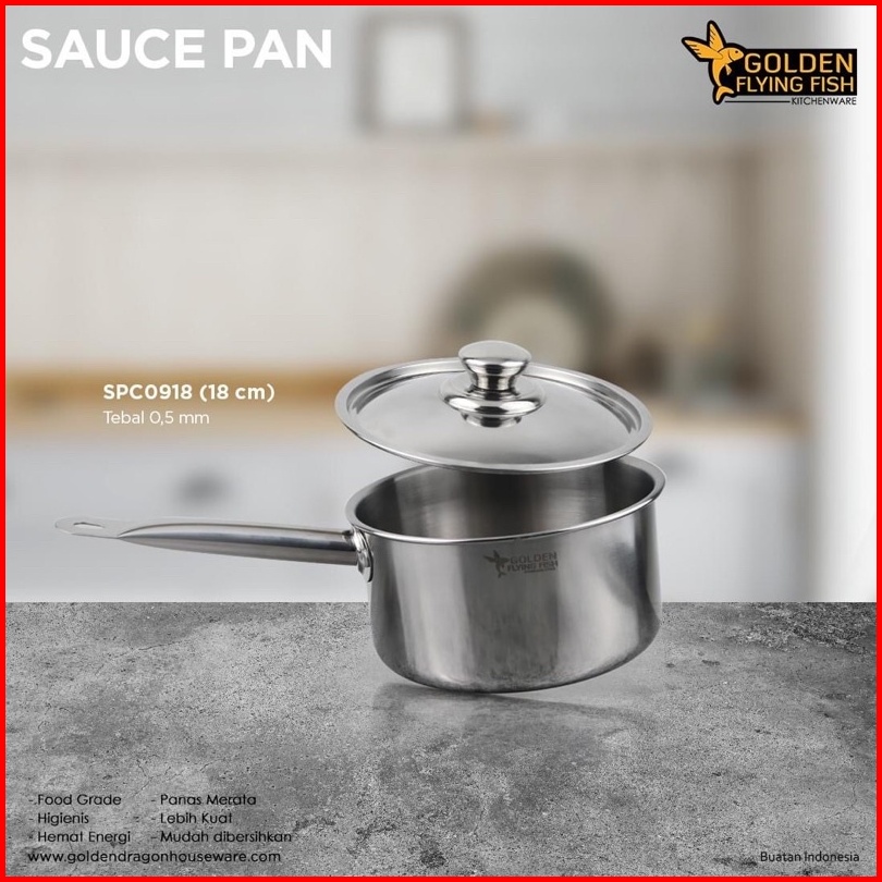 Golden Flying Fish - Sauce Pan 18cm - Panci Stainless Steel - 100 Original Food Grade - Panci Indomie Gagang Tahan Panas