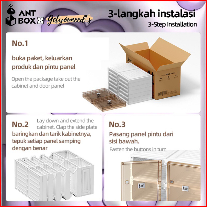 Antbox Rak Lemari Sepatu Transparan Mudah Dipasang