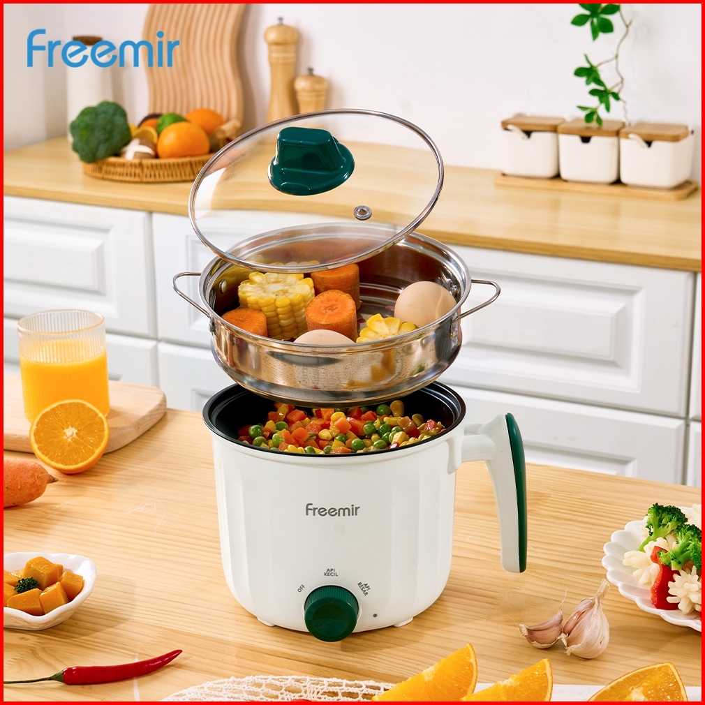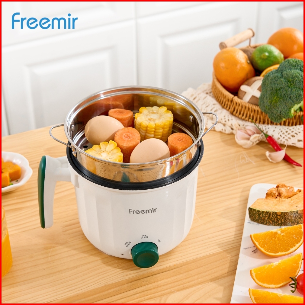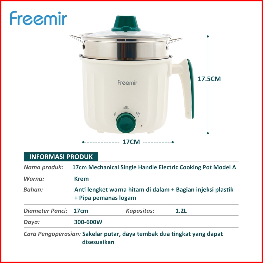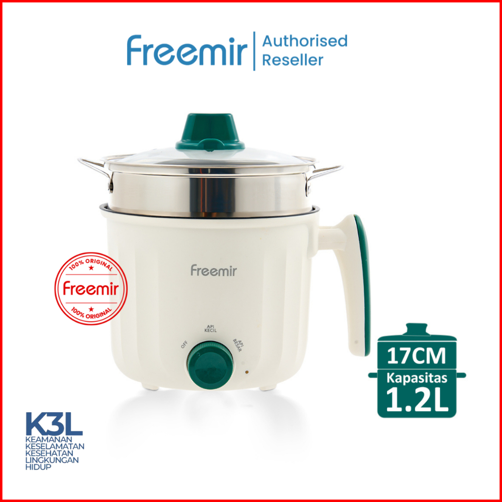 New Freemir Panci Listrik Elektrik 17 Cm 1.2 Liter Anti Lengket Rice Cooker Mini Dengan Pengukus