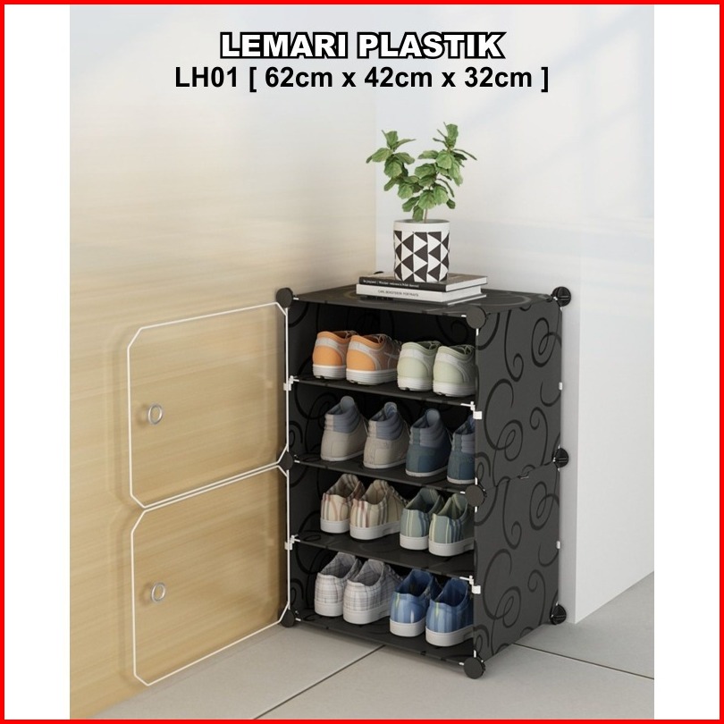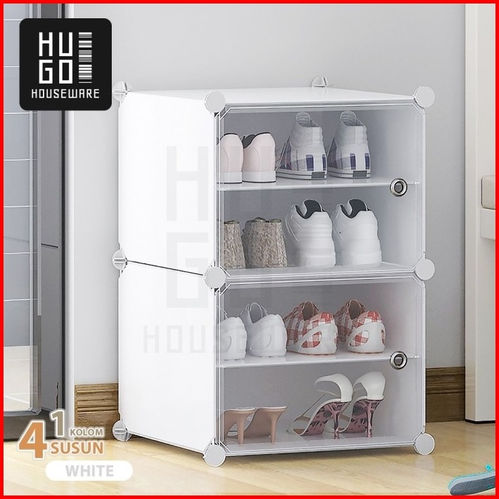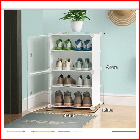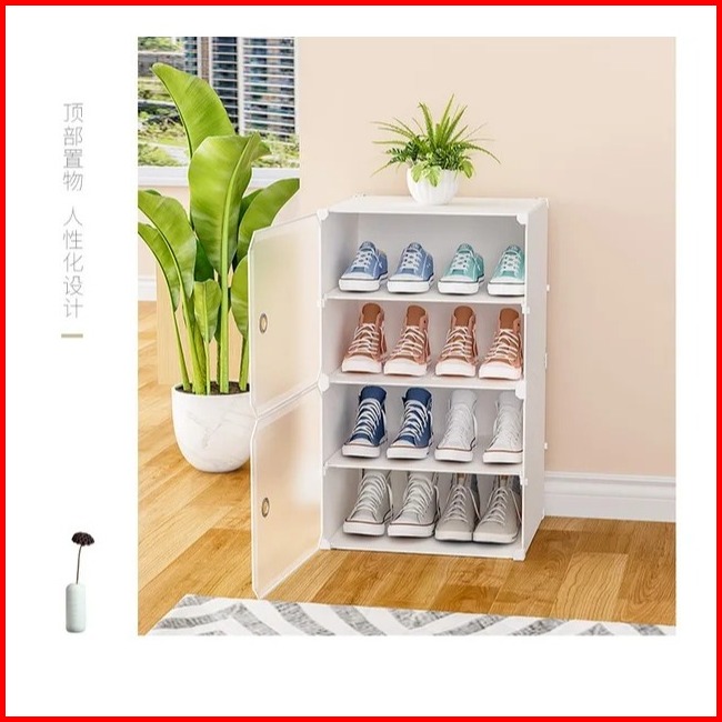 Diskon Rak Sepatu Portable 2 Kolom 4 Kotak Sendal Tebal Tertutup Anti Debu Lemari Sepatu Minimalis
