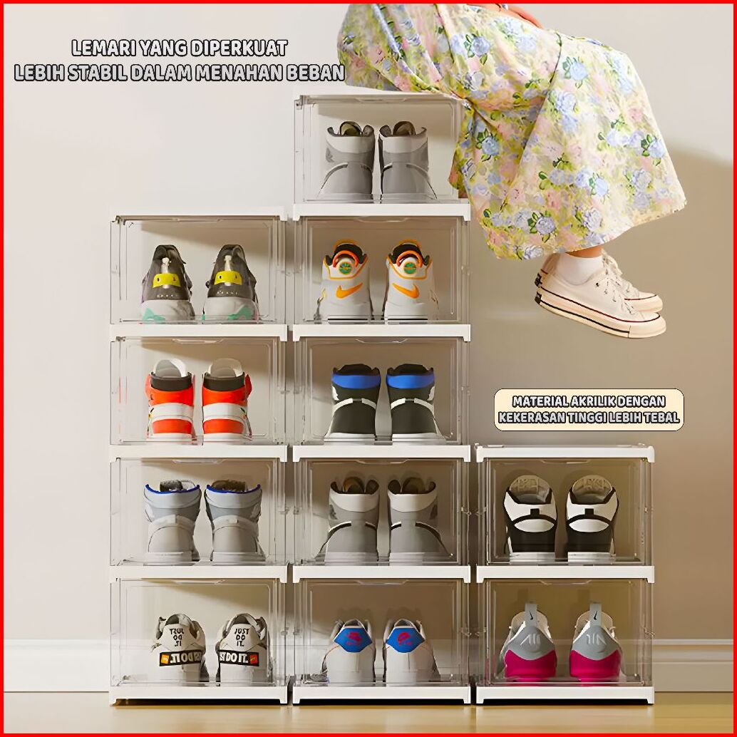Lostars Tidak Perlu Instalasi 3 6 Susun Kotak Sepatu Lipat Rak Sepatu Lipat Lemari Sepatu Lipat Kotak Sepatu Transparan