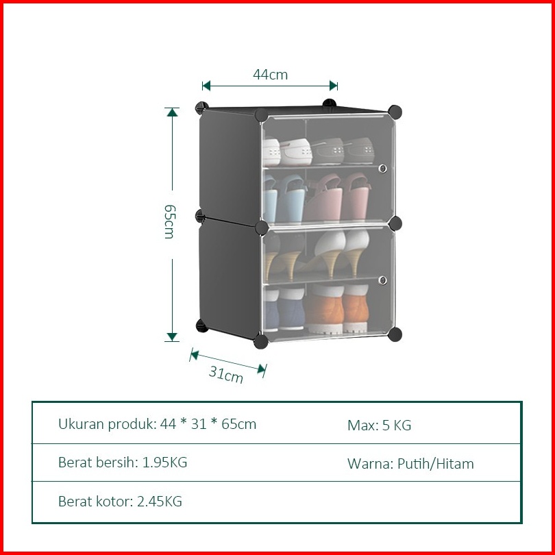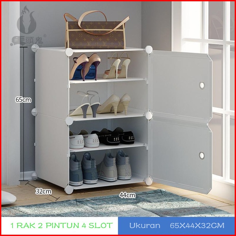 Rak Sepatu Susun Lemari Sepatu Rak Sepatu Portable 4 Tingkat Tertutup Anti Debu Ukuran 44 X 31 X 65 Cm