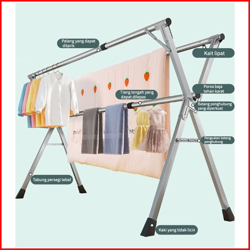 Termurah Jemuran Baju Stainless Steel Jemuran Jemuran Pakaian 160cm-240cm Jemuran Gantungan Jemuran Baju Lipat Tidak Dip