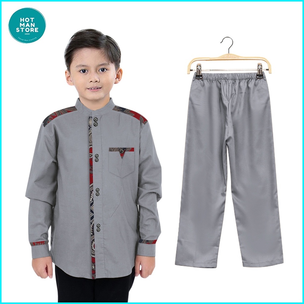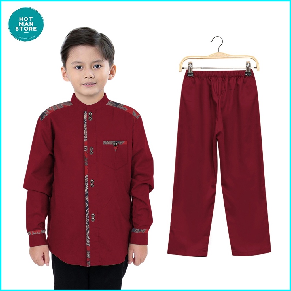 Hotman Baju Setelan Koko Batik Kurta Pakistan Anak Laki-laki 4 Tahun - 10 Tahun Lengan Panjang Terbaru 2022