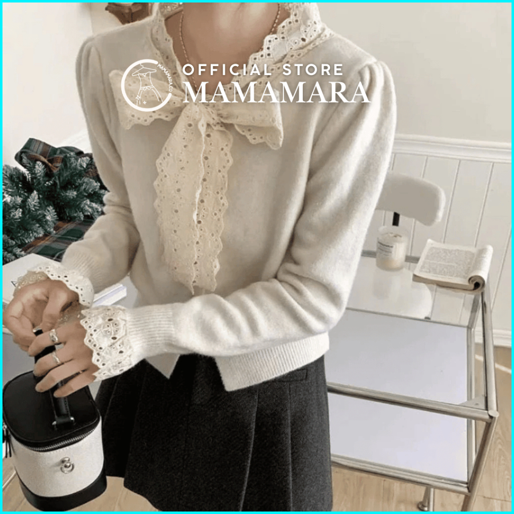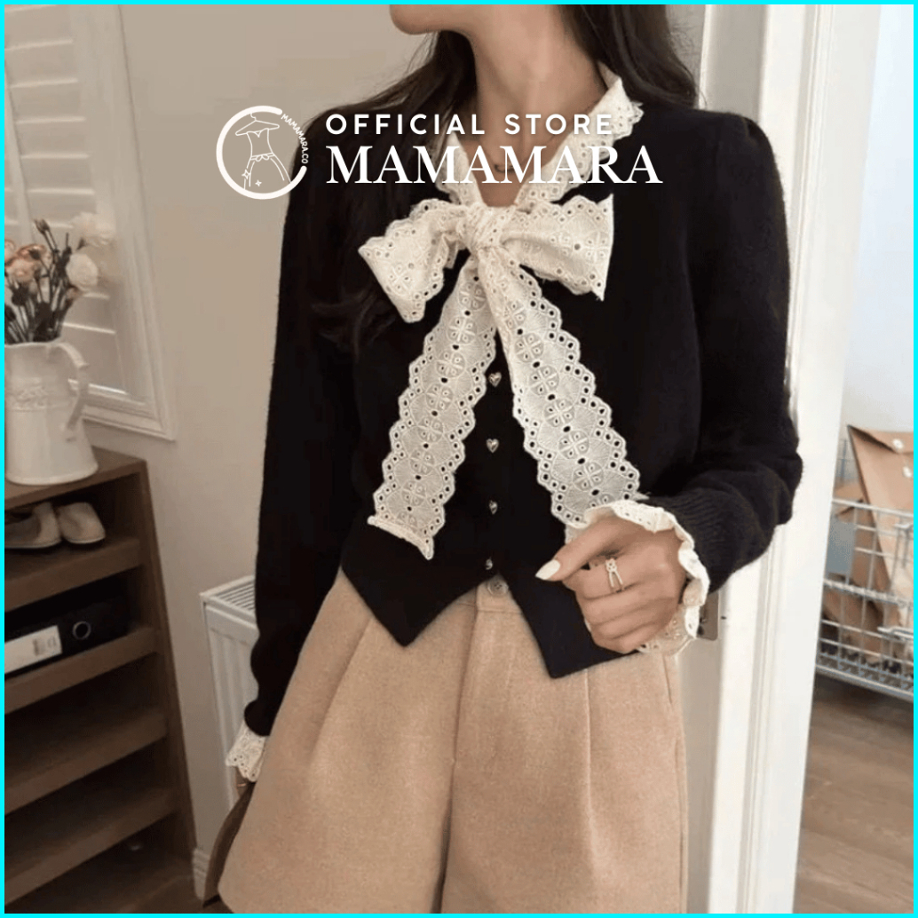 Mamamara - Atasan Rajut Blouse Wanita Knitwear Kancing Love Round Neck Polos Kombinasi Renda