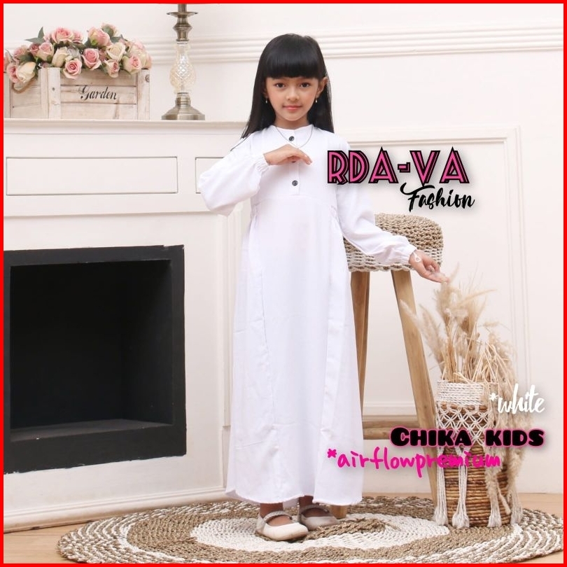 Gamis Polos Anak Usia 3-15 Tahun Terbaru Cika Dress Premium Baju Muslim Anak Hitam Putih Polos