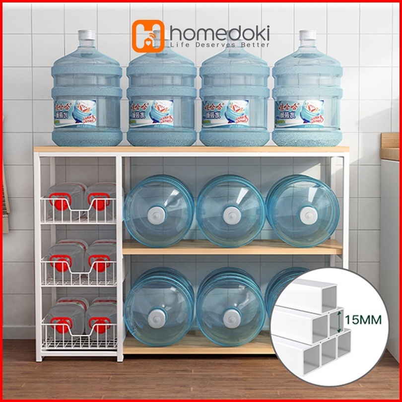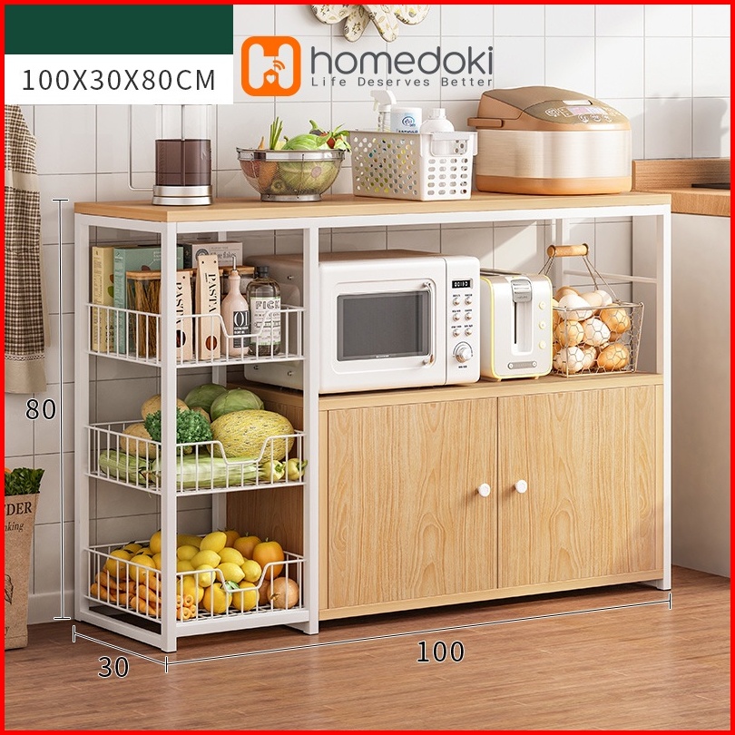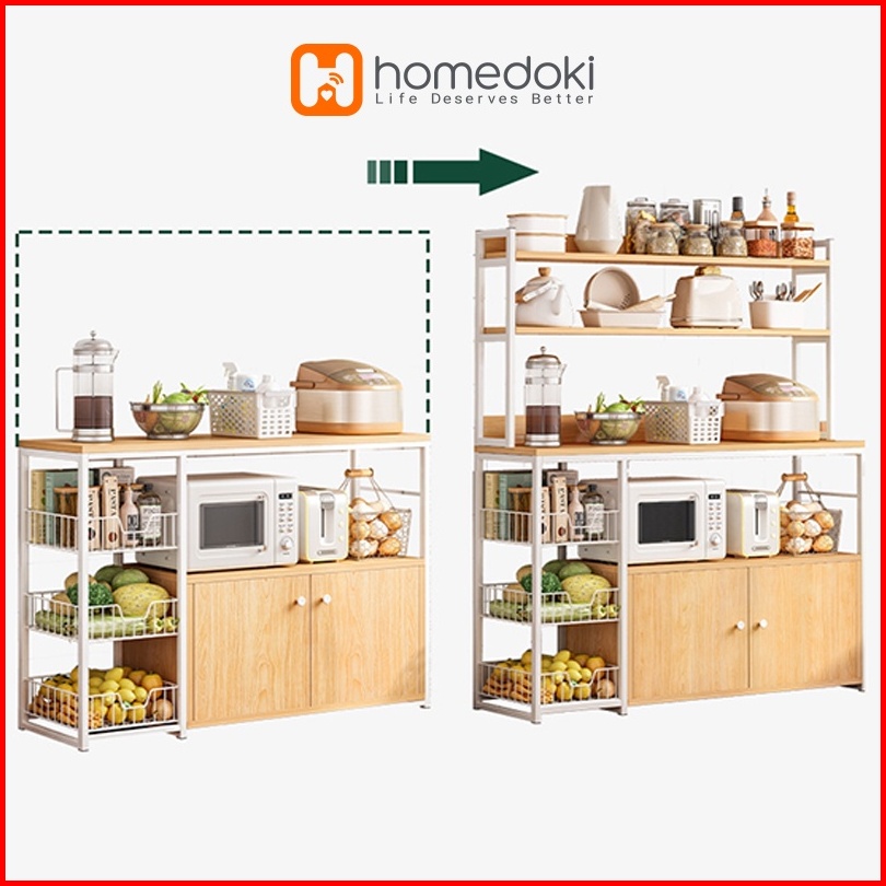 Homedoki Microwave Rak Dapur Susun Minimalis Bumbu Dapur Kayu Serbaguna Rak Serbaguna Minimalis