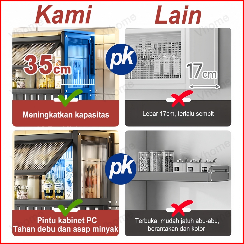 Vhome Lemari Dapur Gantung Lemari Dinding Dapur Rak Bumbu Dapur Dinding Lemari Kabinet Rak Gantung Dapur Kabinet Dapur A