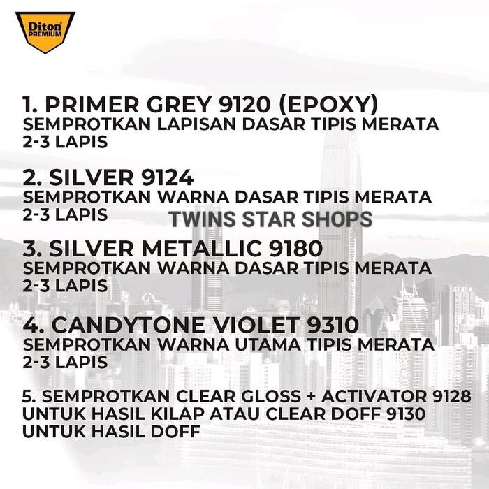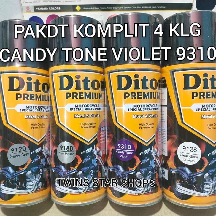 Pilox Diton Premium Diton Premium Paket Lengkap 4 Kaleng 400cc Candy Tone Violet 9310 Ungu Candi Primer9rey 9120 Silver