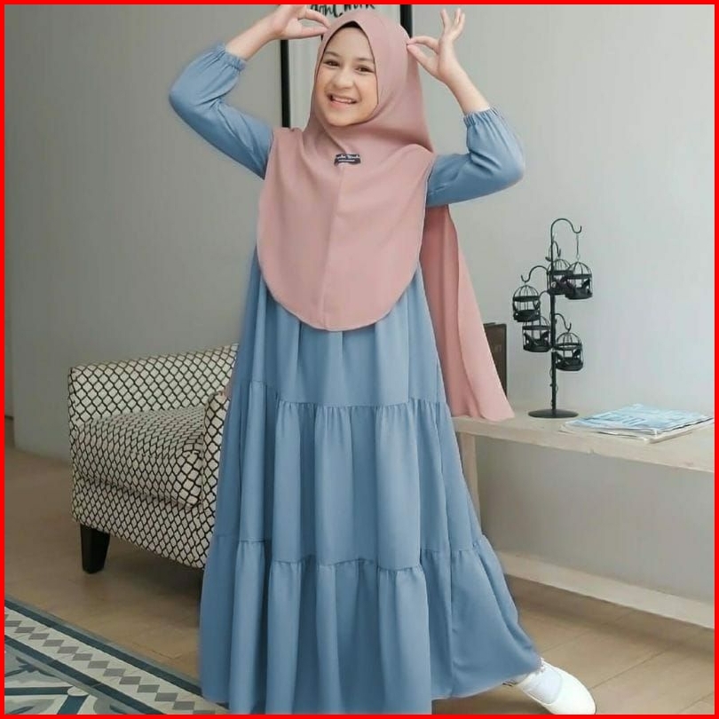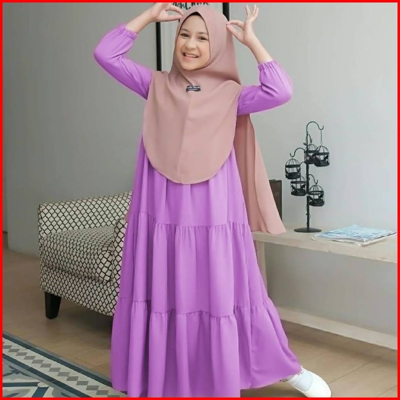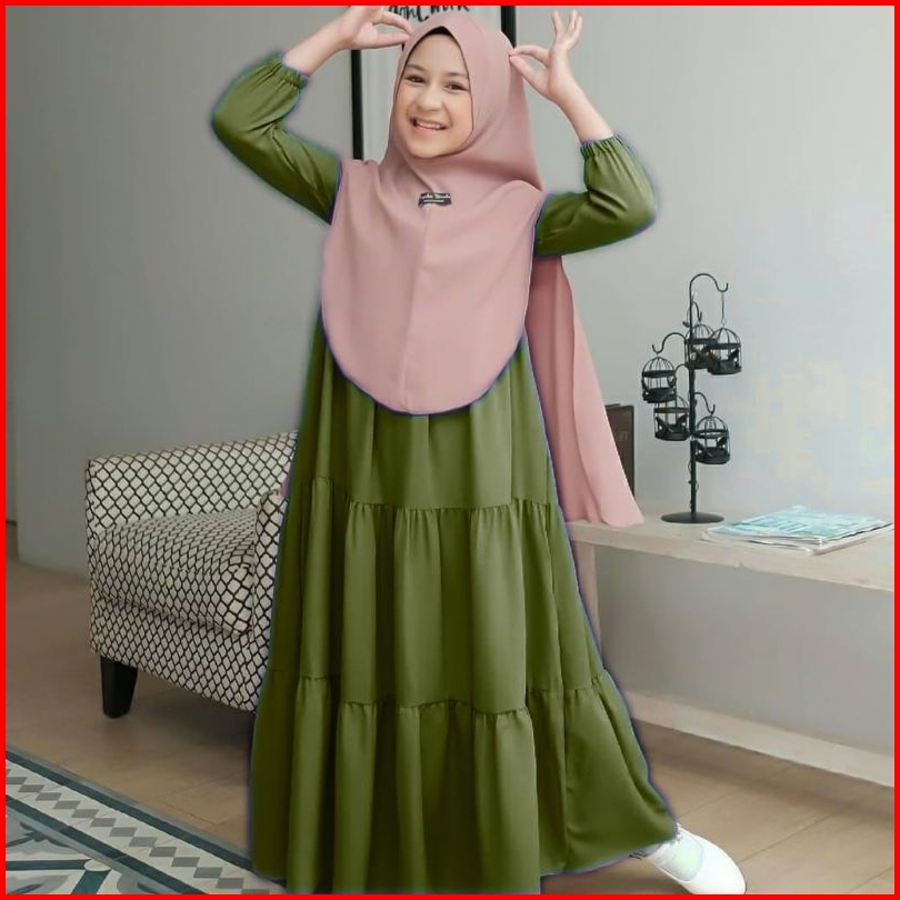 Baju Gamis Anak Tanggung Perempuan Terbaru Syar I Viral Usia 7-12 Th Midi Dress Anak