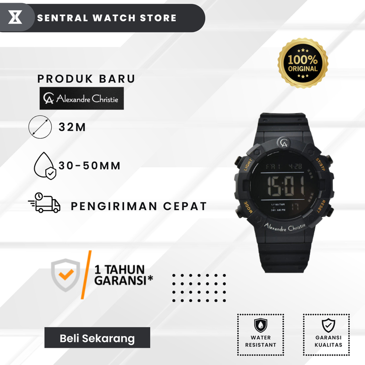 JAM TANGAN PRIA ALEXANDRE CHRISTIE DIGI AC 9388 MH RIPBAYL MEN DIGITAL DIAL BLACK RUBBER STRAP