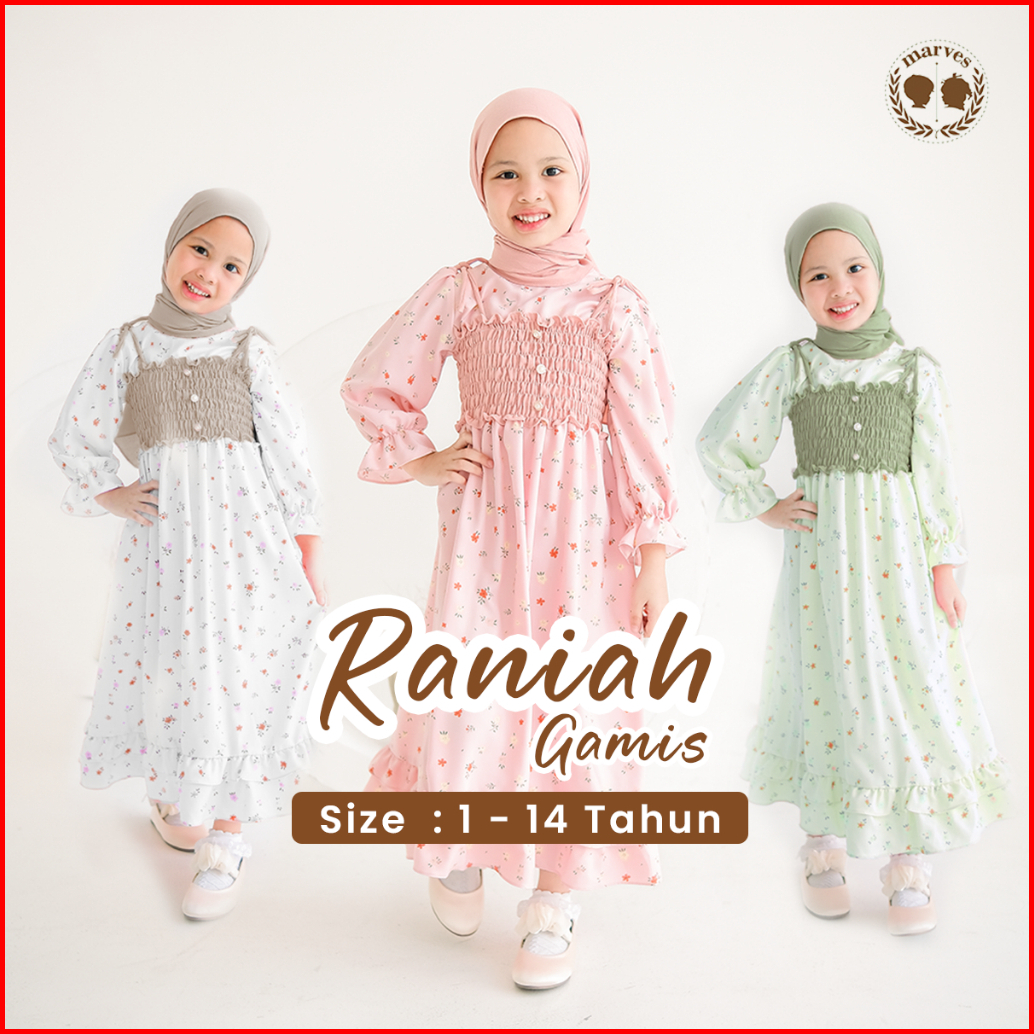 Cuci Gudang Marves Raniah Baju Gamis Anak Perempuan Set Hijab Usia 2 Hingga14 Tahun