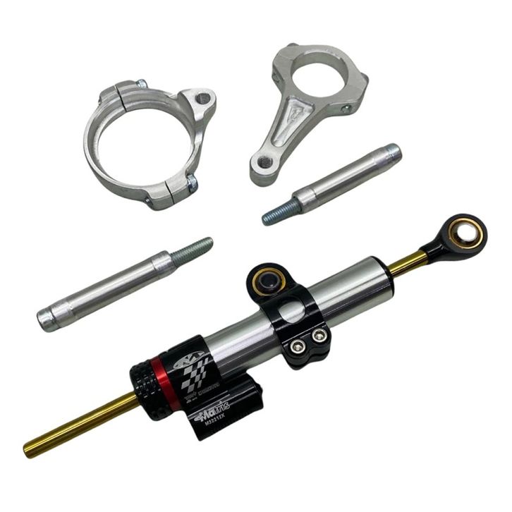 PAKET STABILIZER STANG STEERING DUMPER TENGAH PENDEK PLUS BREKET UNIVERSAL NINJA150 RR R S AS 33 MATRIS SILVER CARBON