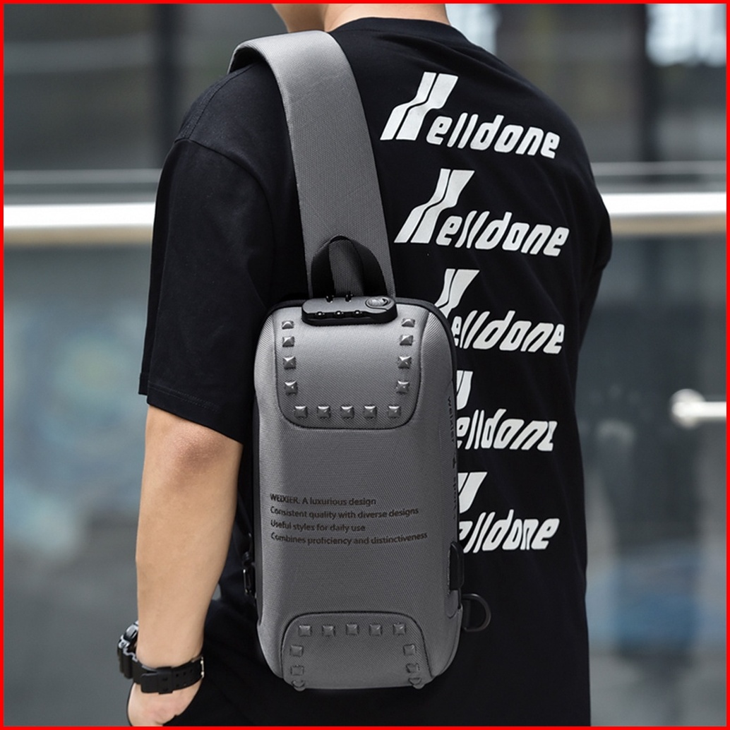 Weixier X308 Tas Selempang Pria Shoulder Bag Anti Maling Usb Port Wx-os