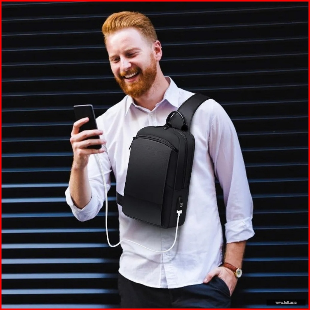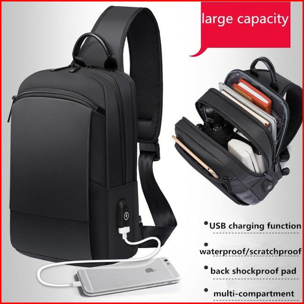 Bg77112 Tas Selempang Sling Shoulder Chest Bag Cowok Pria Tablet Ipad 7.9 Usb