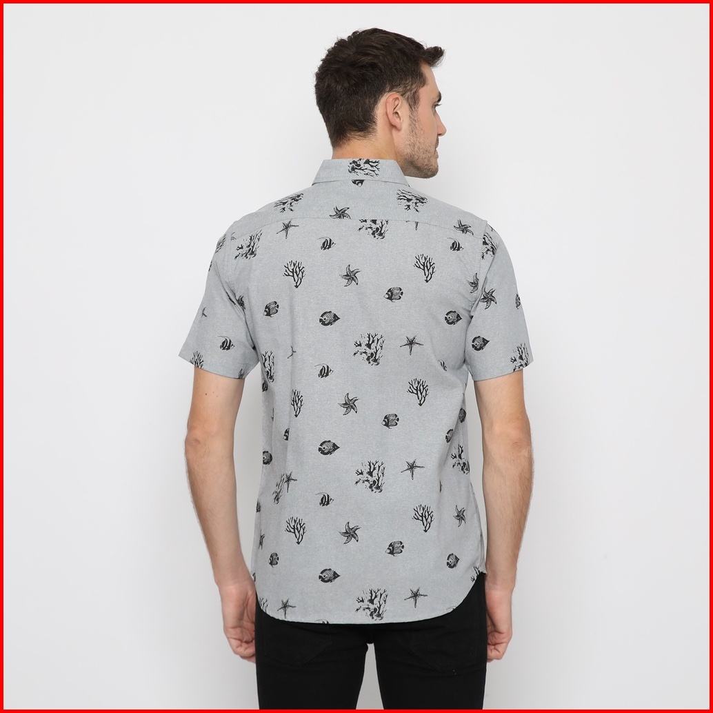 Platini Kemeja Motif Pria Lengan Pendek Katun Abu 73328
