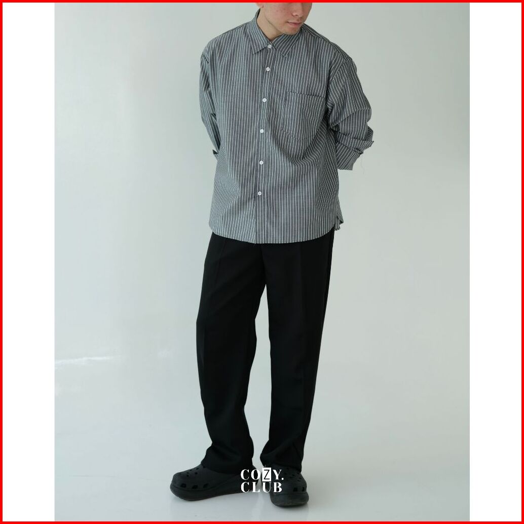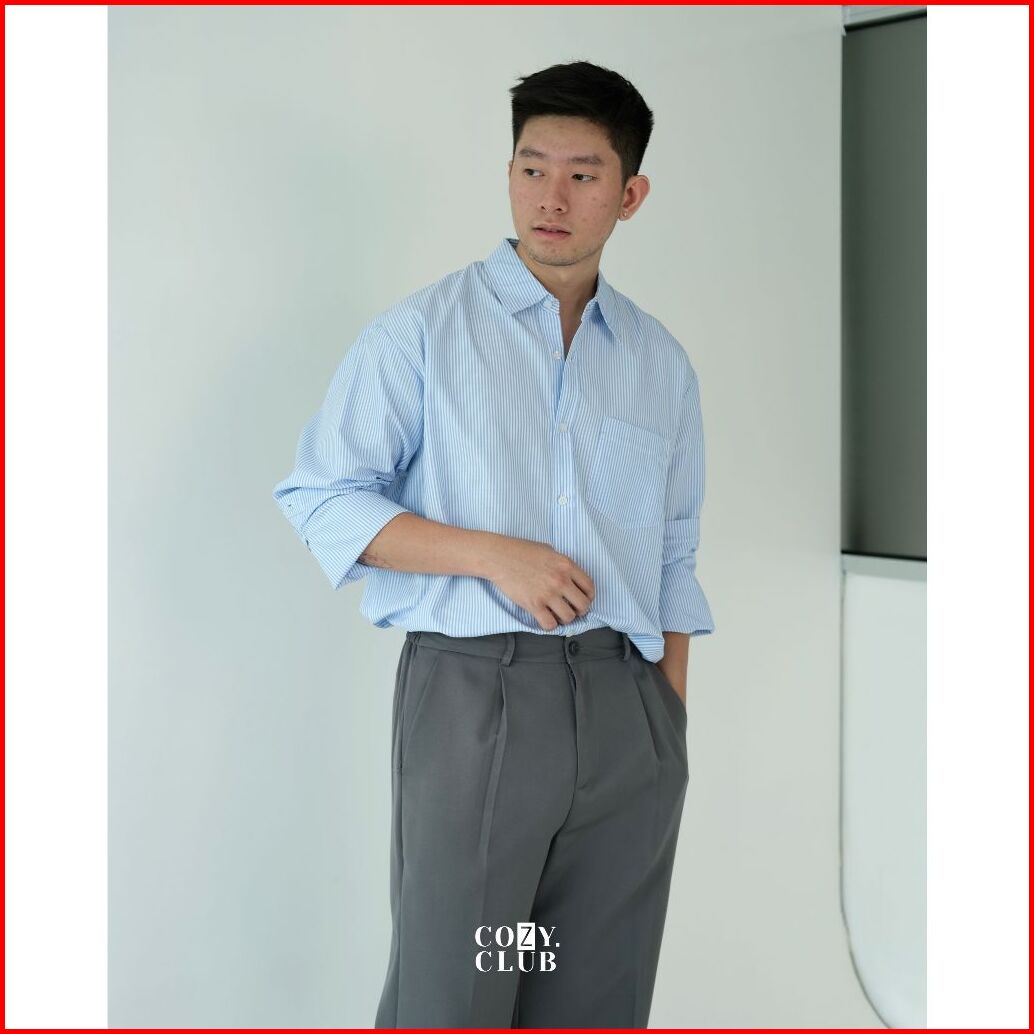 Cozyclub Stripe Oversized Longsleeve Shirt Kemeja Stripe Oversize Pria Lengan Panjang 301