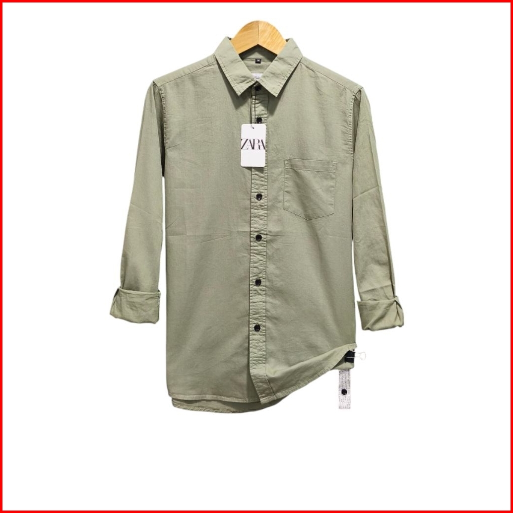 Zara Kemeja Pria Slimfit Polos Panjang Variant Warna Catun Twill