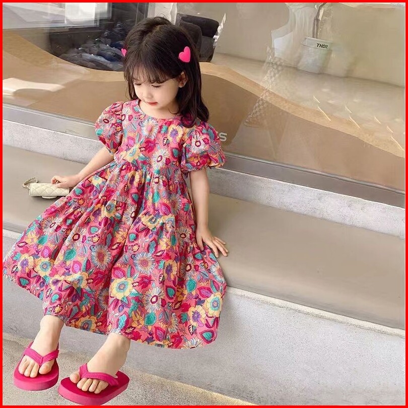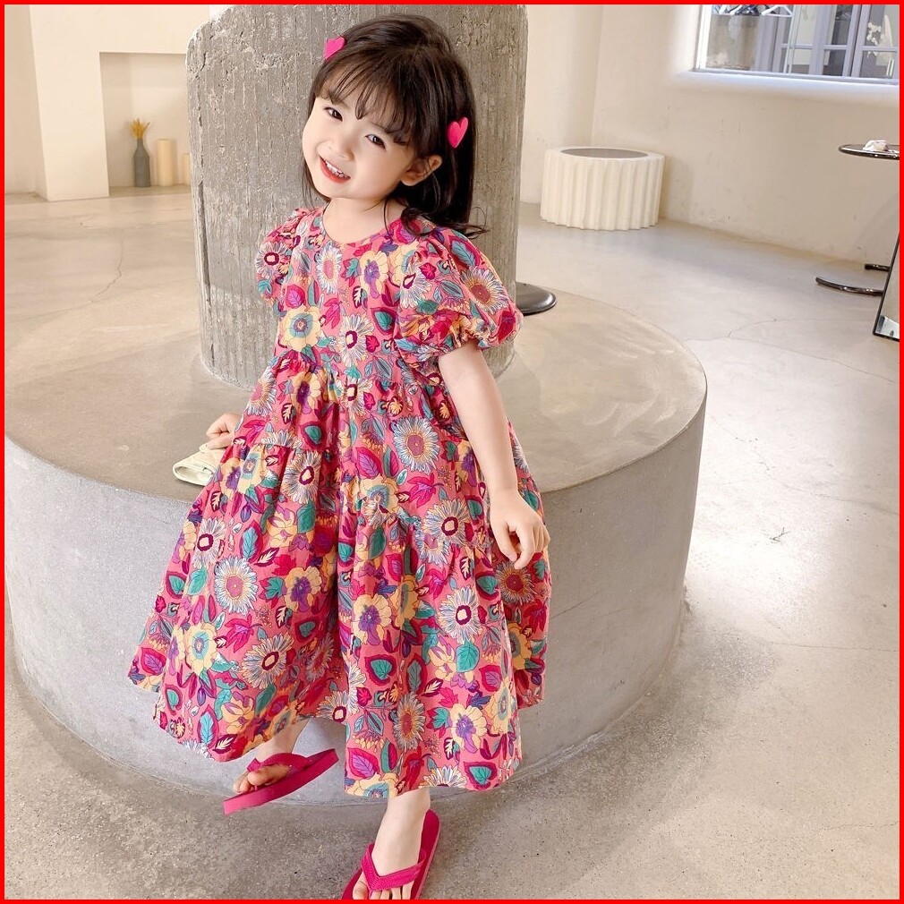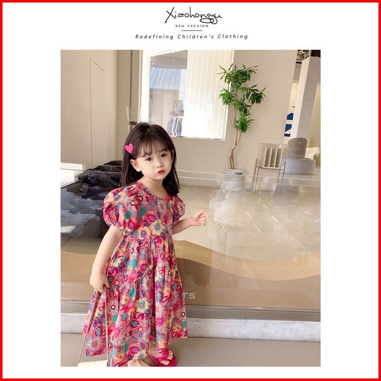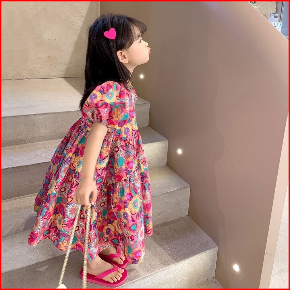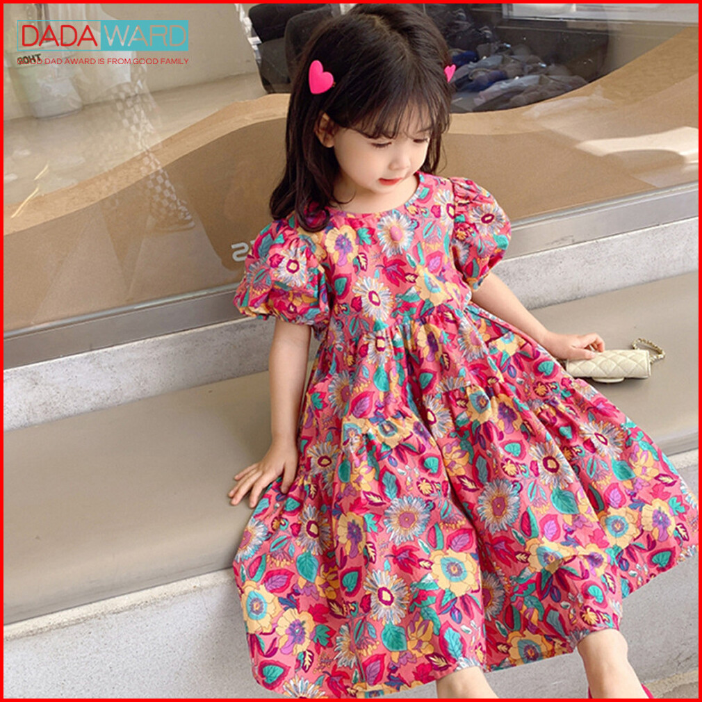 Dadaward 2-7 Tahun Gadis Gaun Bunga Musim Panas Anak-anak Baru Bunga Lengan Pendek Gaun Putri Rok Katun Bayi